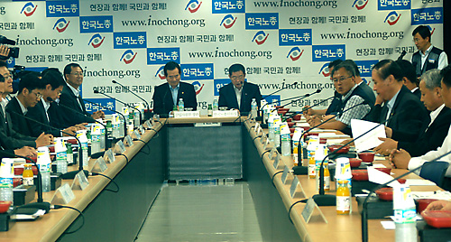 정세균 산업자원부 장관과 이용득 한국노총 위원장은 11일 서울 여의도 노총회관 7층 대회의실에서 ‘도시락 오찬’을 열고 이같이 의견을 모았다. 특히, 산업자원부는 정세균 장관과 김종갑 차관을 비롯한 이재훈 산업정책본부장 등 11명의 주요 간부들을 이날 모임에 대거 참석시켜 이같은 의지를 피력했다. 한국노총에서도 이용득 위원장과 백헌기 사무총장 등 중앙 임원들과 각 산별노련 위원장들이 대거 참석했다.