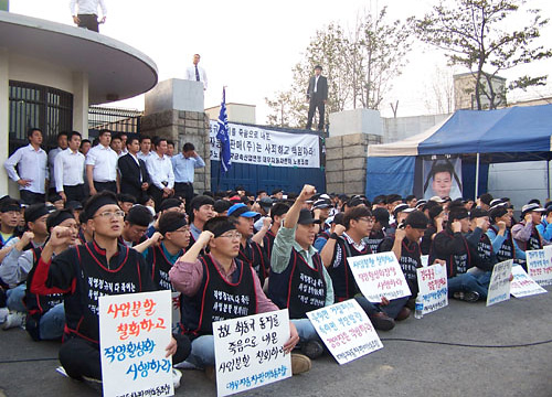 김 위원장은 "최근 조합에 100여명의 노동자들이 신규로 가입, 조합원 수가 250명 가량 늘어났다"면서 "회사쪽의 강요로 SR임금체계에 동의했던 이들이 회사의 일방적 구조조정을 더이상 보고만 있지는 않겠다는 의사표시로 노조에 가입한 것"이라고 밝혔다. 김 위원장은 "이러한 조합원들의 의지를 반영, 이번 투쟁 역시 반드시 승리하겠다"고 덧붙였다.