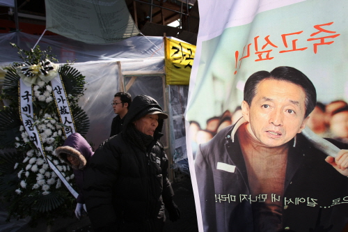 패러디는 재밌다. 보통 풍자나 익살이 그 목적인데 경제위기 한파에 종종 웃음을 주니 그 효용이 크다. 지난달 30일 시민단체 회원들이 용산화재참사 현장 앞 인도에 김석기 서울경찰청장의 영화 포스터 패러디물을 내걸고 있다. 공사현장에나 있을 대구경 쇠파이프를 어깨에 딱 걸친 폼이 그 표정과 어울리고 사진을 오려붙인 솜씨도 제법이다. 그 옆에 조화만 없었어도, 이미 주름 깊고 허리 굽은 노인들 너머 용산철대위의 농성 천막만 안보였어도 즐거울 뻔 했다. 여기저기서 속도전이 한창인데, 대규모 건설회사의 재개발 속도전에 맞서 기껏 공기 좀 늦추는 식으로 망루를 쌓아 저항하던 철거민들이 그리도 거슬렸나. 특공대 투입하며 '빼라 다!' 명령했나. 참담한 소식 듣고 현장 찾은 시민과 기자들은 '패라 다!'라고 지시했나. 분향소 흰 국화가 아직 싱싱한데 유임설이 솔솔 피어오른다. 패러디도 무서울 수 있다.