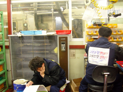 옆에 있던 윤아무개씨가 그의 말을 거들고 나섰다. “생산직에서 일하는 많은 이들이 외환위기 때 해고를 경험해 본 사람들입니다. 고통분담을 하면 했지 해고는 다시 경험하기 싫습니다.”