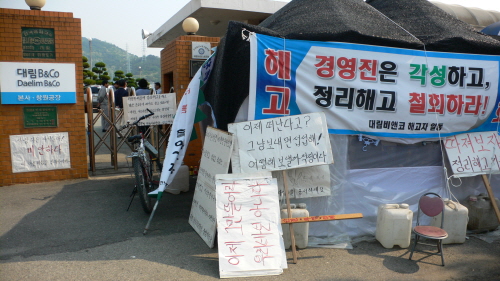 농성장 바로 옆 회사 정문에는 해고자들이 "사랑하는 자녀들아 미안하다"라고 적은 문구가 눈에 띄었다. 17년간 근무한 해고노동자 김은영(47)씨는 "올해 대학에 입학한 아들이 등록금이 없어 입학을 포기했다"며 "아들이 입학 대신 아르바이트를 선택해 생계를 책임지고 있다"고 말했다.