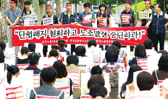 그러나 이런 예상은 가능하다. 단협 해지가 무단협 상태로까지 이어지면, 각 기관과 정부가 계획하고 있는 임금체계 개편 움직임은 급물살을 탈 수 있다. 각종 복리후생 축소와 상시적인 인력구조조정도 보다 손쉽게 이뤄질 수 있다. 해고의 자유 확대, 임금과 사회복지지출 삭감은 노동 유연화의 핵심이다. 조직률 65.5%의 ‘철밥통 노조’를 깨 정부가 취하려는 것도 이것이다. 정부가 취할 수 있는 것은 또 있다.