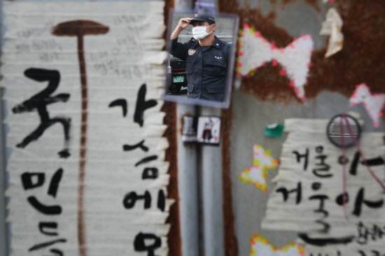 용산은 거울입니다. 우리 사회 가시지 않은 어둠을 비추는 거울입니다. 신임 국무총리가 "용산 문제 해결을 위해 노력하겠다"고 말했던가요. 추석을 앞둔 참사현장 녹슨 철판에 걸린 거울엔 유족이며 대책위 회원의 움직임을 살피는 경찰만 보입니다.