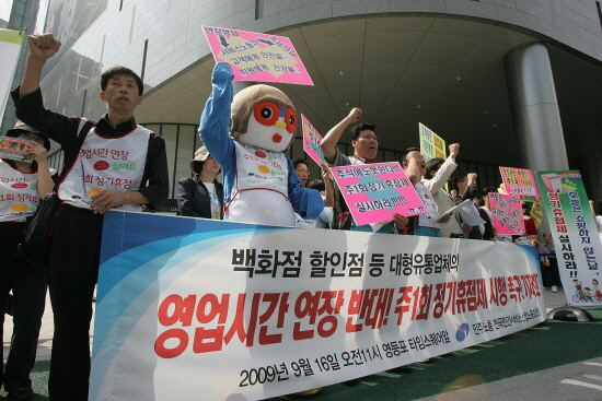 복합쇼핑몰 시대가 개막하면서 백화점 휴점제가 사라지고 영업시간도 오후 10시까지로 늘어나고 있는 추세다. 연말 정기휴점을 건너뛴 신세계는 전통적으로 문을 닫았던 1일에도 영업을 계속했다. 정기휴점제와 영업시간 규제를 요구하는 노동계와 갈등이 지속될 전망이다.
