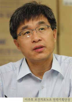 이주호 : 보건의료노조는 98년 출범해 2004년부터 산별중앙교섭을 시작했다. 지난해에는 사용자단체가 해산돼 중앙교섭마저 중단했다. 올해 역시 산별중앙교섭 개최가 쉽지 않아 보인다. 노조법이 개정되면서 산별노조는 중대한 어려움에 봉착했다. 새로운 가능성을 모색해야 할 때라는 것만은 분명하다. 기업별노조체제가 보편화된 한국사회에서 산별노조운동은 쉽지 않다. 고립된 섬과 같다. 그러나 각 산별노조는 어려운 조건 속에서도 새로운 길을 개척했고, 한계가 있더라도 그 길을 꾸준히 가고 있다. 이 점은 긍정적으로 평가해야 한다. 산별중앙교섭의 틀을 갖추는 것을 넘어 산업의제 등 내용적인 부분을 강화하는 노력이 필요하다