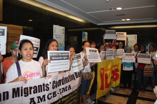 민주노총을 포함한 국내 노동·시민단체들은 이날 오후 서울 종로 보신각 앞에서 집회를 열고 최근 강화된 정부의 이주노동자·도시빈민(노점상) 단속을 비판하고 G20경호특별법 폐기를 촉구했다. 집회 참가자들은 "정부는 G20 정상회의에 대비해 5만여명에 달하는 경찰력을 투입하고 다목적발사기·음향대포 등 국민 생명을 위협하는 경찰 무기도입을 추진하고 있다"며 "정부가 어떠한 비판의 목소리도 들으려 하지 않고 국민을 향해 무차별 폭력을 휘두른다면 국제사회의 비난은 물론 국민적 저항에 직면하게 될 것"이라고 경고했다.